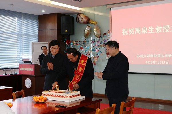 戴克胜首先代表唐院领导发言,他高度评价了周教授为苏大及唐院发展做出的突出贡献,代表唐院师生向周泉生教授的辛勤付出表示崇高的敬意,并祝福周教授在以后的生活中身体健康、吉祥如意。