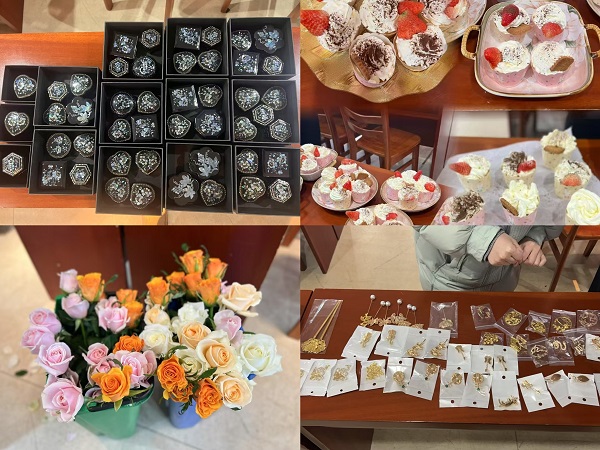 活动伊始,老师们先挑选自己心仪的螺钿首饰盒,并领取精心准备的鲜花和纸杯蛋糕,在芬芳甜蜜的氛围中开启今天的活动。