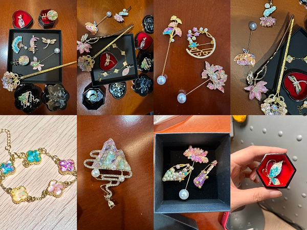 在尹老师的指导下,各位老师纷纷拿起工具,开始体验螺钿饰品的制作。大家精心配色、认真镶嵌,用心感受着传统工艺的魅力,活动现场气氛热烈,欢声笑语不断。经过一个多小时的精心制作,一件件精美的螺钿饰品在大家手中诞生,有典雅别致的胸针、有精致小巧的手链、还有大气华丽的发簪,每一件作品都凝聚着大家的巧思和匠心。大家表示很开心能近距离感受非遗文化的魅力,将以此次活动为契机,继续传承和弘扬中华优秀传统文化,立足岗位,勤勉上进,为学校发展贡献更多智慧和力量。