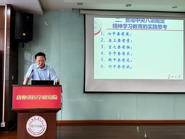 6月4日,唐仲英医学研究院开展2025届全体毕业生离校主题教育暨党员廉洁教育专题活动。活动通过专题讲座、工作部署、重温入党誓词等环节,为毕业生扣好踏入社会的“第一粒扣子”。