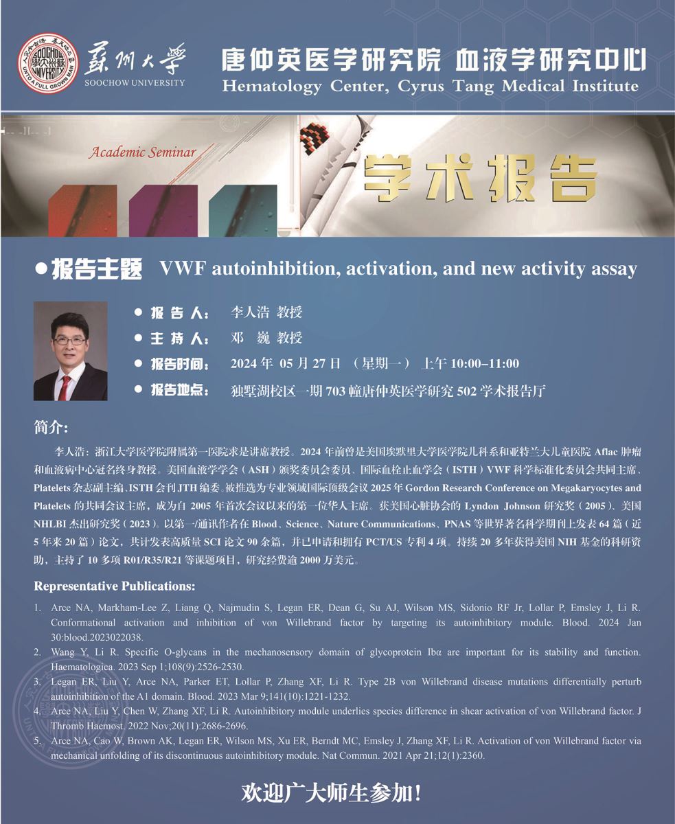2024年5月27日浙江大学医学院附属第一医院 李人浩教授学术报告