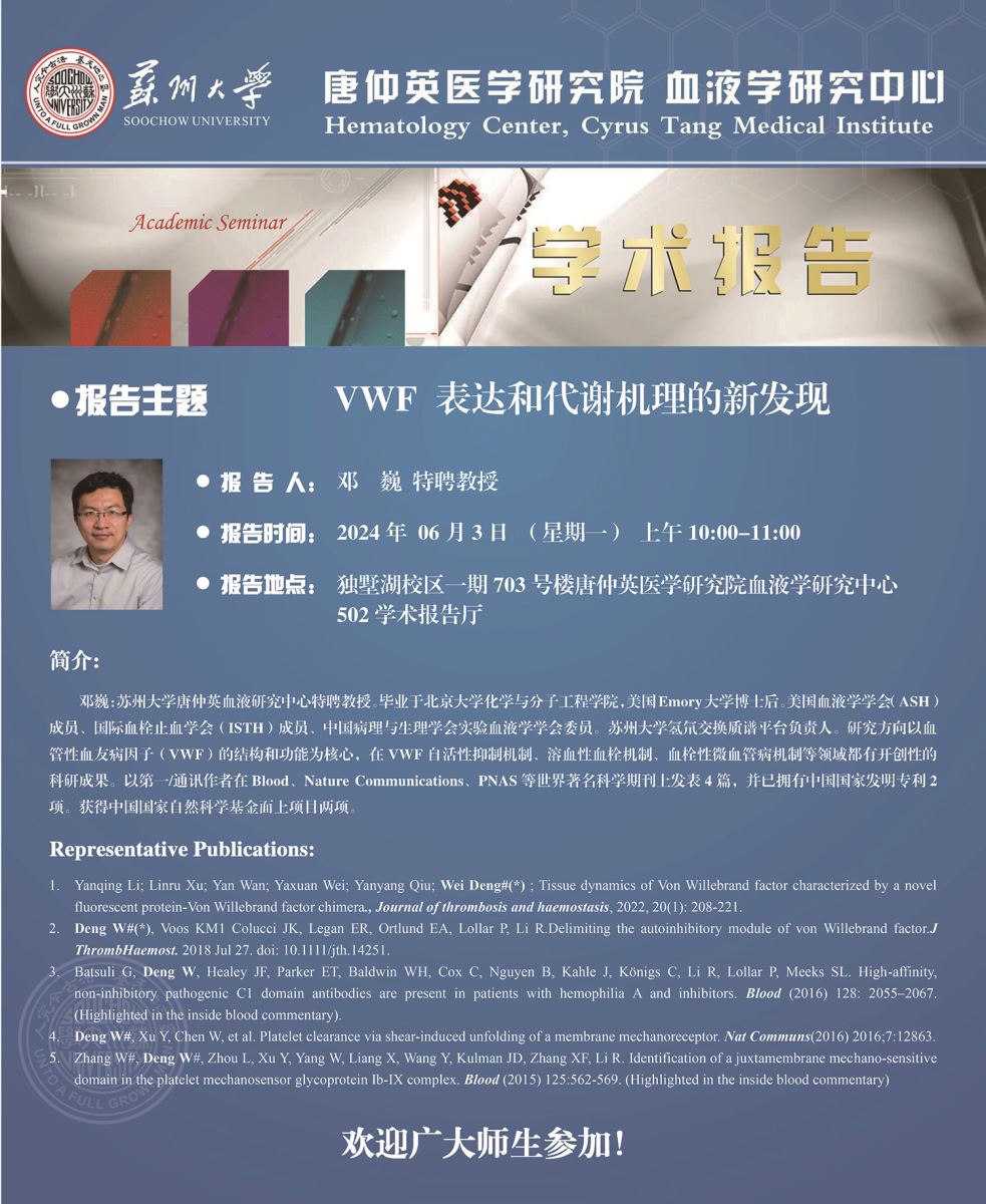 2024年6月3日唐仲英医学研究院 血液学研究中心 邓巍教授学术报告