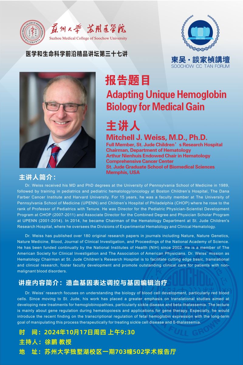 2024年10月17日美国圣裘德儿童研究医院 Mitchell J. Weiss教授学术报告